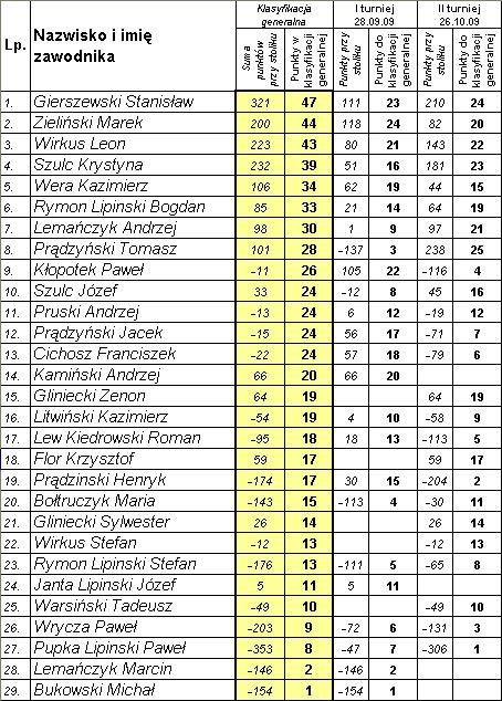 I miejsce z 47 pkt. zajmuje obecnie Stanisław Gierszewski z Lipnicy,