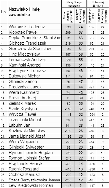 Klasyfikacja generalna po trzecim spotkaniu kształtuje się następująco: