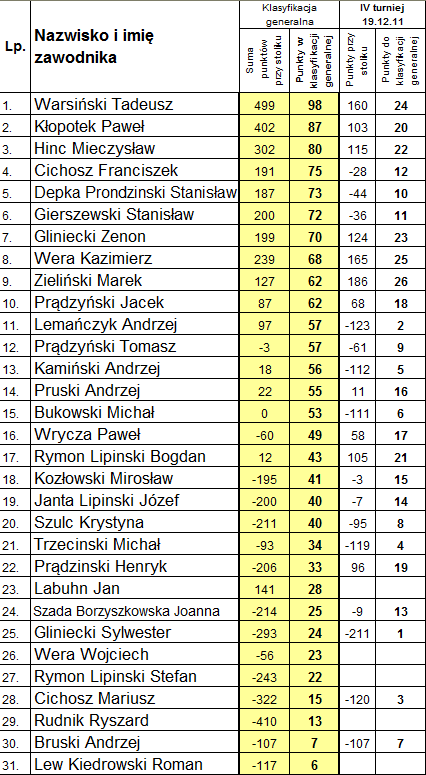Klasyfikacja generalna po 4 spotkaniach: