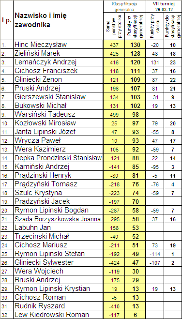 Klasyfikacja po siódmym rozdaniu: