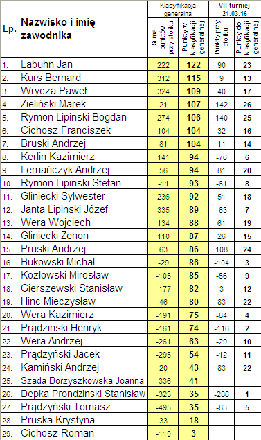 Wyniki rozgrywek w nowej edycji "lipnickiej baśki" z dnia 21 marca 2016 r.