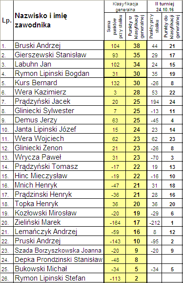 Klasyfikacja po drugim rozdaniu: