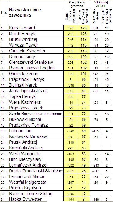 Klasyfikacja po siódmym rozdaniu: