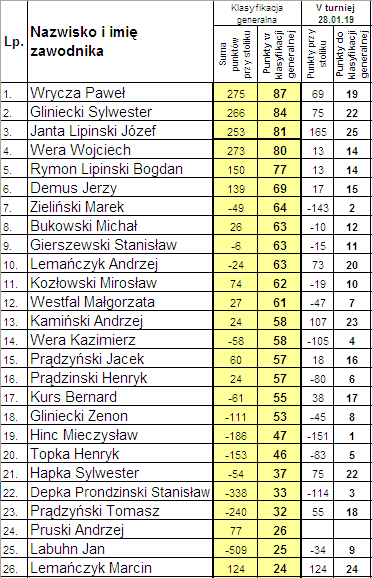 Klasyfikacja po piÄ…tym rozdaniu: